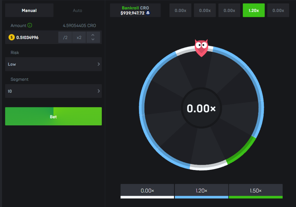 Place a bet on wheel, low risk. Change risk to medium or high, the wheel stays the same visually as low risk, only the payouts change.