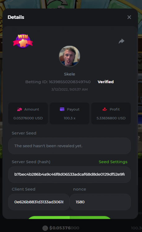 loads fine for me //******************* Nubs27's Smart Script for Crash ******************* // // // // If you find this script helpful please consider donating to Nubs27 or tipping on NanoGames.io: // Referral Link: https://n-luzqe.nanogames.io/ // // Donations accepted in many coin/token types. List & Addresses: // https://sites.google.com/view/nanogamescrashscripts/home/donation-addresses // // // var config = { mainTitle: { label: '*** Nubs27\'s Smart Script for Crash ***', type: 'title' }, auto: { label: '', value: 'Script', type: 'radio', options: [ { value: 'Script', label: 'Script chooses Base Bet'}, { value: 'Player', label: 'Player chooses Base Bet'} ]}, bet: { label: 'Base Bet', value: currency.minAmount, type: 'number' }, lossTitle: { label: 'Stop When ', type: 'title' }, stop: { label: 'Coins Lost >', value: 1, type: 'number' }, end: { label: 'Minutes >', value: 250, type: 'number' }, profit: { label: 'Profit >', value: 100, type: 'number' }, }; function main () { //PayOuts checked in the Stats Update const MultiplierArray = [2.5, 3.00, 5.00, 6.00, 7.00]; const LMultiplierArray = [10.00, 20.00, 50.00, 100.00]; var version = "v2.3"; var PayOutPercents = []; var PayOutConfidence = []; var Array2Filter = []; var FilteredArray = []; var ScriptHistory = []; var Trains = []; // Red Train IDs - finding gaps between & correlation between gap & duration var History = []; var RoundsPlayed = 0; var RoundsViewed = 0; var LastGameID = 1; var CurrentGameID = LastGameID + 1; var MinimumBet = currency.minAmount; var MaxBet = (currency.amount / 10); var TotalBets = 0; var CurrentMultiplier = MultiplierArray[1]; var LastMultiplier = MultiplierArray[1]; var MaxLossesEncountered = 3; var MostLost = 0; var LargestMulitplier = 2; var BaseBet = config.bet.value; var CurrentBet = BaseBet; var LastBet = BaseBet; var LastShrek = CurrentGameID; var LastTrain = 0; var Gap = 0; var AverageGap = 0; var LargestBet = [0,0]; var Enable100ID = 1000000; var LastResult = "Won"; var CoinLost = 0; var StopLossCoin = config.stop.value; var Losses = 0; var Wins = 0; var Red = 0; var Green = 0; var StartTime = new Date(); var EndTime = new Date(); var TimeDiff = (EndTime - StartTime); var StartBalance = currency.amount; var EndBalance = 0; var Profit = 0; var ATHProfit = 0; var ProfPerMin = 0; var NetProfit = 0; var DisplayGreeting = "False"; var GotHistory = "False"; var BetYet = "False"; var LoggedBetData = "False"; var GameInfoLogged = "False"; var StrategyFound = "False"; var IsPlaying = "False"; var UpdateBets = "False"; var Enable100 = "False"; var LastCrash = 0; var PrevCashOut = 0; var WonAmount = 0; var FindThisMultiplier = 1; var FindShouldHave = 2; var ThisAverage = 1; var HistorySlice = 50; var Paused = "True"; var IndexMax = PayOutConfidence[0]; var MaxIndex = 0; var GetNumber = 0; // Welcome the Player to the Script console.clear(); if (DisplayGreeting == "False") { log.info(' Nubs27s Smart Script for Crash'); log.info(" ****************"); log.info("See Web Console for more Information (Press F12)"); console.log('%c~~~~~~~~~~~~~~~~~ Nubs27\'s Smart Script for Crash ~~~~~~~~~~~~~~~~~','color:Purple; font-weight:bold'); console.log('%cScript Start Time: ' + StartTime,'color:Purple; font-weight:200'); console.log(' %cWelcome ' , 'color:Purple; font-weight:bold'); console.log(' %cYour Starting Balance is: ' + StartBalance + ' ' + currency.currencyName, 'color:Purple; font-weight:bold'); if (config.auto.value == 'Player') { if (config.stop.value > currency.amount) { MaxBet = (currency.amount / 10); config.stop.value = currency.amount * 0.98; console.log('%c[WARNING]: Stop Loss is above your Bankroll','color:Orange; font-weight:bold'); console.log('%c[WARNING]: Stop Loss Updated to ' + config.stop.value, 'color:Orange; font-weight:bold'); } if (config.bet.value > (config.stop.value / 15000)) { log.info('[WARNING]: Script Recommends a bankroll of at least ' + (BaseBet * 15000) + '' + currency.currencyName + ' for the Base Bet you provided'); log.info('[WARNING]: Script Recommends a bankroll of at least ' + (BaseBet * 20000) + '' + currency.currencyName + ' for the Base Bet you provided'); log.info('[WARNING]: Script Recommends a bankroll of at least ' + (BaseBet * 25000) + '' + currency.currencyName + ' for the Base Bet you provided'); } console.log(' %cYou Input: ' + BaseBet + ' ' + currency.currencyName + ' as the Base Bet', 'color:Purple; font-weight:bold'); }else{ betupdate(); console.log(' %cYour Starting Base Bet is: ' + BaseBet + ' ' + currency.currencyName, 'color:Purple; font-weight:bold'); } console.log(' %cYour Stoppers are: Coin Lost > ' + config.stop.value + '; Minutes > ' + config.end.value + '; Profit > ' + config.profit.value, 'color:Purple; font-weight:bold'); console.log('%c~~~~~~~~~~~~~~~~~~~~~~~~~~~~~~~~~~~~~~~~~~~~~~~~~~~~~~~~~~~~~~~~~~','color:Purple; font-weight:bold'); if (config.stop.value > currency.amount) { MaxBet = (currency.amount / 10); config.stop.value = currency.amount * 0.95; console.log('%c[WARNING]: Stop Loss Updated to ' + config.stop.value, 'color:Orange; font-weight:bold'); } } DisplayGreeting = "True"; if (GotHistory == "False") { getnanohistory(); GotHistory = "True"; console.log(ScriptHistory); LastShrek = []; LastTrain = []; } // // // //Everything above here only runs 1 time game.onBet = function () { console.log(' ----------------------------'); CurrentGameID = (LastGameID + 1); console.log('[Round ID]: ' + CurrentGameID); if (StrategyFound == "False") { strategy(); } //Checks User Parameters for Stopping Script checkstoppers(); CurrentBet = BaseBet; MaxIndex = Math.floor(Math.random() * MaxIndex); CurrentMultiplier = GetNumber; CurrentBet = ((CoinLost + BaseBet) / CurrentMultiplier - 1); checkbet(); if (BetYet == "False") { console.log("[Betting] " + CurrentBet.toFixed(7) + " at " + CurrentMultiplier + "x"); log.info("[Betting] " + CurrentBet.toFixed(7) + " at " + CurrentMultiplier + "x"); game.bet(CurrentBet, CurrentMultiplier).then(function (payout) { console