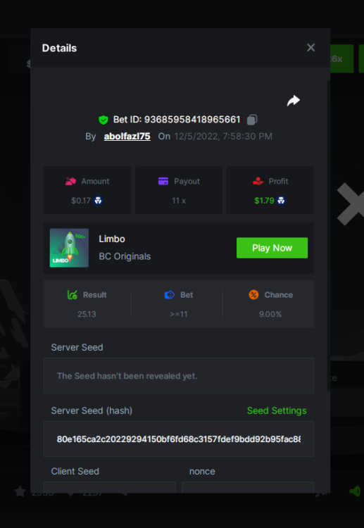 $2,500 Prestige Limbo & Hash Dice Multiplayer Challenge #58abolfazl75 replied to BCGame_Ewa's topic in Past Challenges