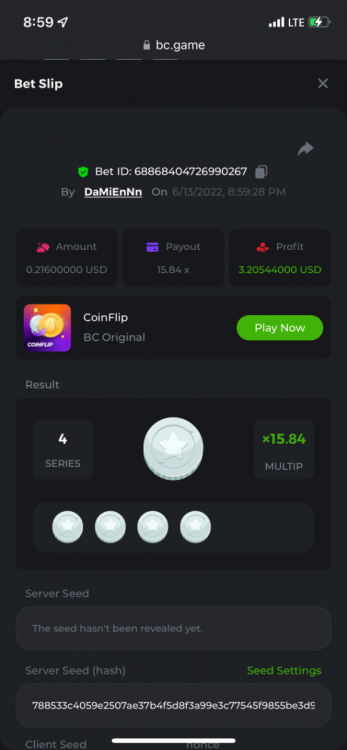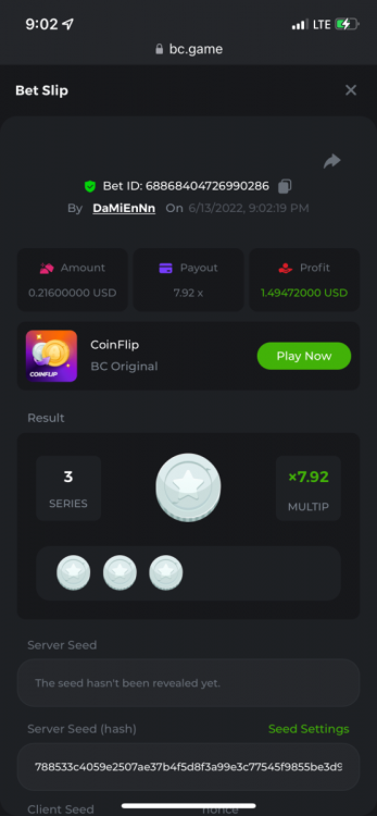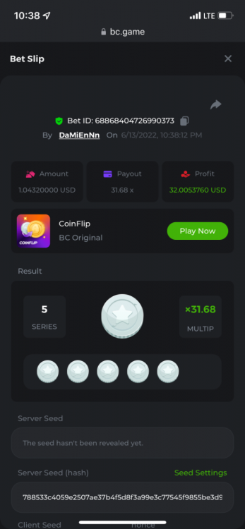 1. https://bc.game/sd/?sd=10OY9ADWZQX4B7 35.5x $0.1 bet https://bc.game/sd/?sd=10OY9YIM4Q25N7 36x $0.20 bet https://bc.game/sd/?sd=10OYBIE0SQC8B7 21.5x $0.10 bet
